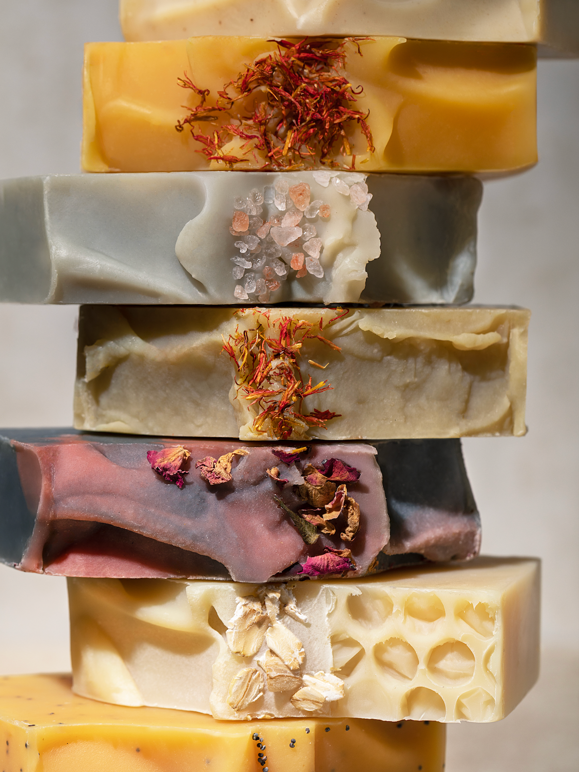 Handcrafted cold process soaps — infused with pure essential oils, rich butters, and natural oils for a gentle, nourishing cleanse.